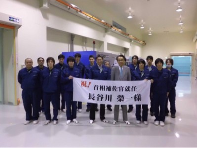 内閣総理大臣補佐官、長谷川栄一様が来社され工場視察と意見交換を行いました。